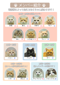 時間帯で会える猫ちゃんが変わりますので、ぜひ気になる猫ちゃんに会いに来てください🐈✨